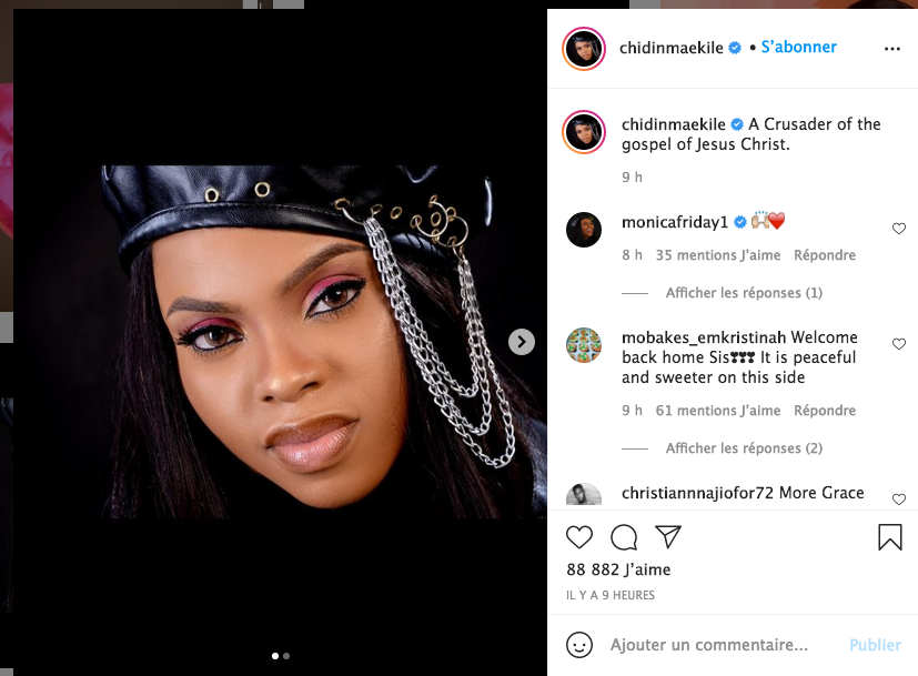 La chanteuse Nigériane Chidinma, chanteuse très connue en Afrique a operé un grand changement dans sa vie et c'est un grand changement vu que la chanteuse a annoncé à ses fans qu'elle arretait sa carrière dans la musique profane pour chanter Jesus-Christ. La chanteuse l'a annoncé sur les réseaux sociaux. Desormais vous retrouverez sa musique au rayon gospel
